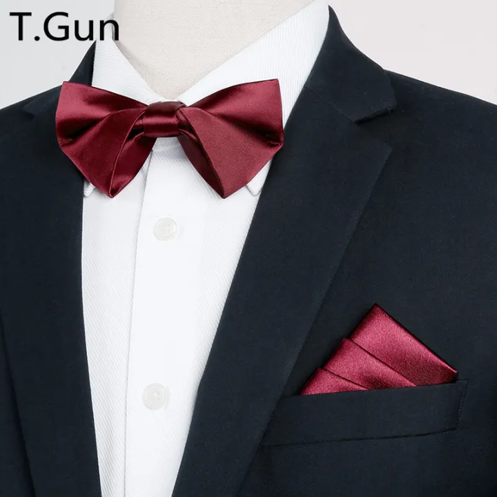 Bridegroom Wedding Bow Tie Pocket Towel Set Wine Red Wedding Men S Solid Color Bow Suit British Trendy Square Towel Lazada Singapore